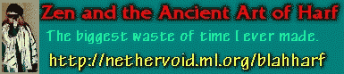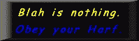 - Harf Button -- A delightful graphic sporting the phrase "Blah is nothing. Obey your harf." The name of the file "harfbutton3.gif" leads me to wonder if there are two previous incarnations of which I am unaware. Made by Spike Blake.