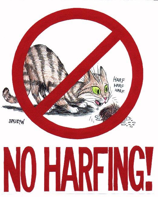 - No harfing! -- No harfing allowed, apparently. I also found this cartoon at this web site.
