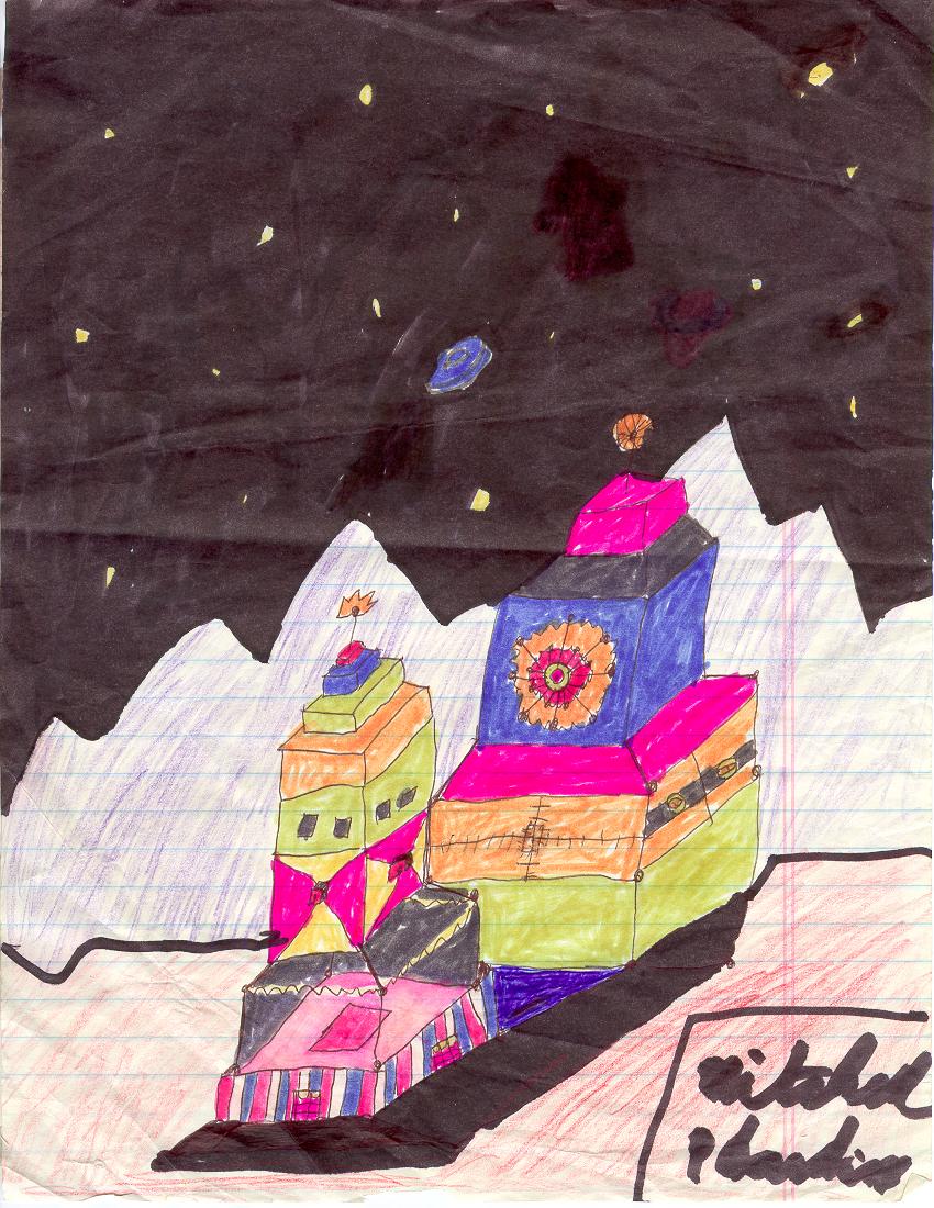 - Early art #4 -- This one is unique, in that I actually signed it. Perhaps I was too ashamed of the others to take credit for them. There is definitely some kind of a building present.
