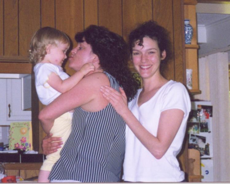 Avery, Colleen, and Shannon -- My niece is held by my sister Colleen, while Shannon smiles for the camera. Taken in the kitchen of Shannon's house.