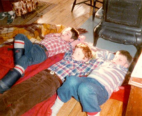 Brian, Graham Blake, and Matt (left to right) -- Belgrade Lakes, Maine. Probably watching the Dukes of Hazzard.