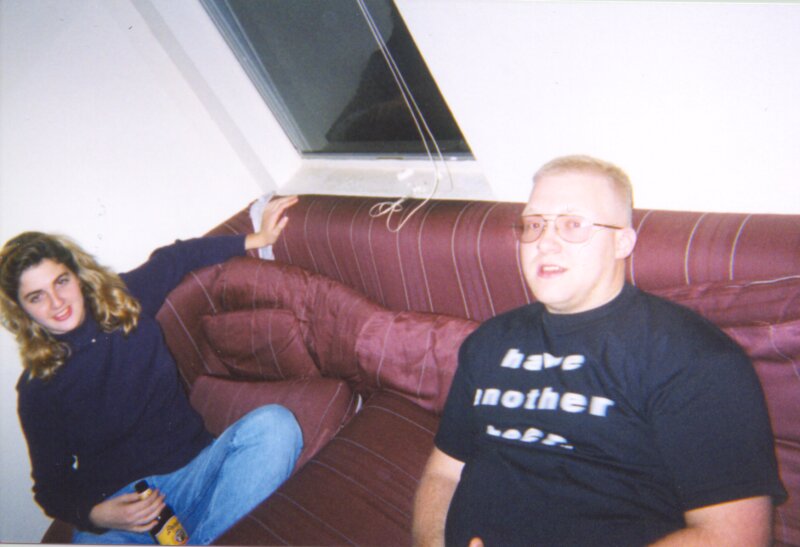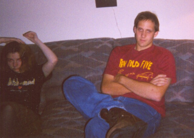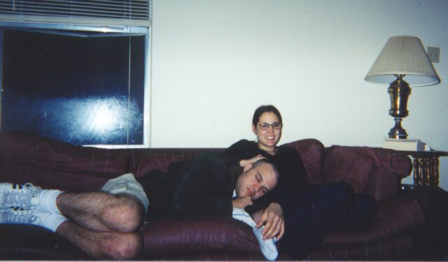 Me, Andrea Golden, and Matt -- Taken on the couch of my sister Shannon's living room in Nacogdoches, Texas. The date is Fall 2000, probably September. Andrea is Matt's girlfriend. We had just driven there from Austin, and are tired.