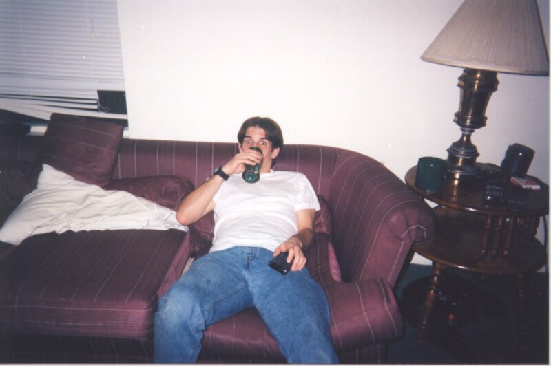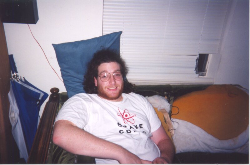 Rob Brenart Sitting -- Rob was one of Matt's roommates. He is seen here sitting in their dorm room. Probably Fall 1997.