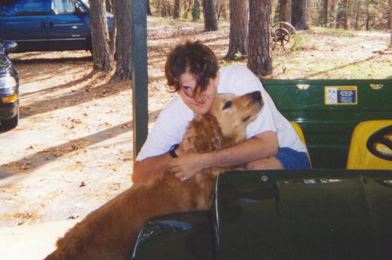 Mitch, the Imapala, and a golden dog -- The dog belongs to Shannon and Jeff. I think it's name is Sunny, but I dont' remember -- they have a lot of dogs. The spoiler is also visible. Isn't it silly? And isn't it undeniable that my mother probably also took this photo?